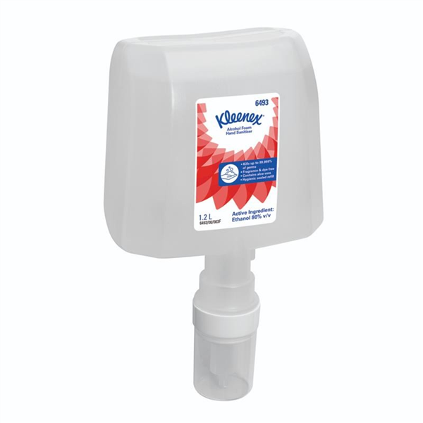delivers effective hand hygiene with a rich, luxurious foam formula that kills up to 99.99% of common germs while being gentle on skin. Dermatologically tested and enriched with moisturisers, it helps prevent dryness, making it suitable for frequent use in high-traffic environments. The sealed 1.2L cartridges ensure hygienic dispensing and reduce the risk of contamination, while each carton contains 4 refills for cost-effective supply management. Designed for use with compatible Kleenex dispensers, this foam sanitiser provides reliable protection and convenience for staff, guests, and customers
