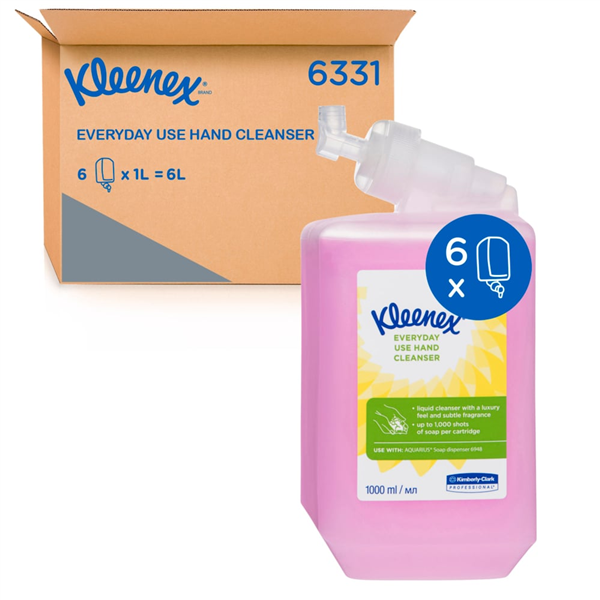 is a premium-quality liquid hand soap designed for reliable everyday hand hygiene in professional environments. This pink liquid soap features a light floral fragrance that leaves hands fresh and clean while being gentle on the skin. Each carton contains six sealed 1L refill cartridges that are easy to load, hygienically protected, and designed to minimize waste. Compatible with a choice of Kimberly-Clark Professional compact push dispensers (69480 White, 7173 Black, 6341 Metallic), these cartridges ensure smooth, single-handed operation and an improved user experience. Developed by Kimberly-Clark Professional, this hand soap is part of a trusted washroom range designed to create safer, healthier, and more productive workplaces