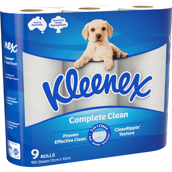 . 3-in-1 clean – soft, strong, and absorbent. Extra-thick sheets for enhanced comfort. CleanRipple texture for a thorough and gentle clean. 9 rolls per pack, 180 sheets per roll