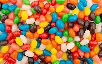 An assorted mix of fruit flavoured, medium sized jelly beans