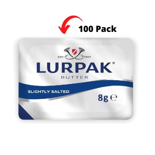 Lurpak Butter Spreadable. Lightly Salted. Individually Wrapped Portions. Size: 8g. Quantity: 100 per pack
