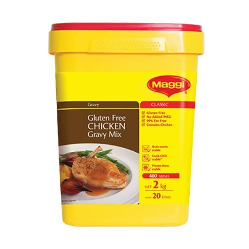 MAGGI Gluten Free Chicken Gravy Mix has the juicy flavours of tender chicken to give you the perfect, easy to prepare tasty gravy. Gluten Free. 99% fat free.