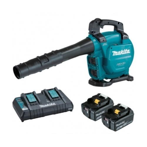 Makita Blower Vac Turbo Brushless Kit. Includes: 2x 5.0AH batteries & same time dual port rapid charger. Cruise control function. 13.4m3/min air volume & 3.2kPa max suction. Vacuum mulching function with 50L capacity bag. Powerful 234km/h air speed. Voltage: 36V (2 x 18V Batteries). Kit Includes: 2 x 5.0AH Batteries and 1 x Dual Port Rapid Charger. Code: DUB363PT2V