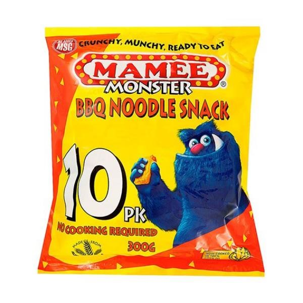 Mamee Noodle Snack BBQ are a fun snack to fill up your little ones during the day, these are a crunchy, munchy, ready to eat snack that makes for an ideal addition to school lunchboxes, or on the go. No cooking required they are ready to eat!. No added MSG. Flavour: BBQ. Serves: 10 per pack. Contains: Soy, cerals, wheat and may contain milk, fish and crustacean.
