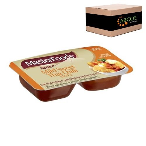 MasterFoods Sweet Thai Chilli Sauce Portion Control comes in a convenient 14g sachet and carton of 100, making it perfect for serving at cafes, bed and breakfasts and on flights. It is an essential in any office, home, school kitchen, canteen, cafe and hotel. Australian made. No artificial colours, flavours or preservatives. Contains: Soy and may contain traces of peanuts. Size: 14g each serve, 100 serves per carton.