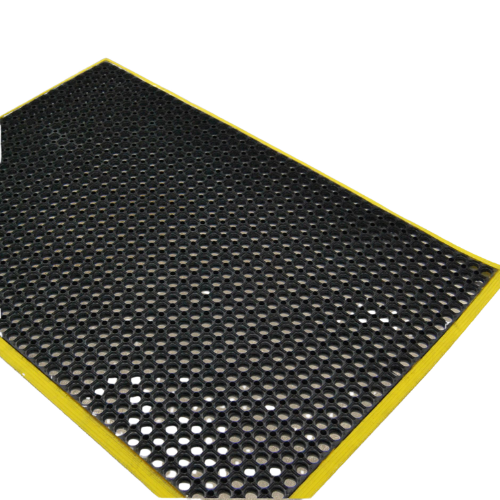 Yellow safety border improves visibility and assists in highlighting mat edges to reduce trip risks.