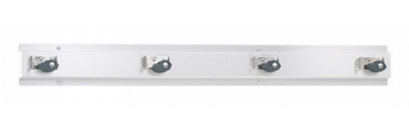 - Guide Specification: Surface-mounted stainless steel mop and broom holder with spring-activated rubber cam holders.