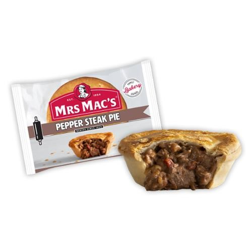 Tender pieces of diced steak in a rich pepper sauce encased in crisp golden brown pastry. 100% Aussie Beef. Individually Wrapped. Size: 175g