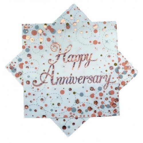 Napkin Lunch Happy Anniversay Sparkling Fizz Rose Gold 16/ Pack