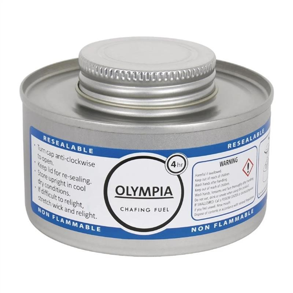 Looking for a chafing fuel that lasts longer than the standard two hours? Then the Olympia liquid chafing fuel with wick will be the product for you. Thanks to the innovative design this chafing fuel has obvious and clearly-stated information so that anyone who uses the product is fully aware of the precautions, allowing for the correct safety hazards to be present.