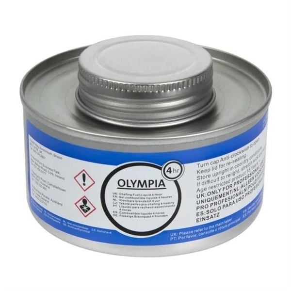Looking for a chafing fuel that lasts longer than the standard two hours? Then the Olympia liquid chafing fuel with wick will be the product for you. Thanks to the innovative design this chafing fuel has obvious and clearly-stated information so that anyone who uses the product is fully aware of the precautions, allowing for the correct safety hazards to be present.