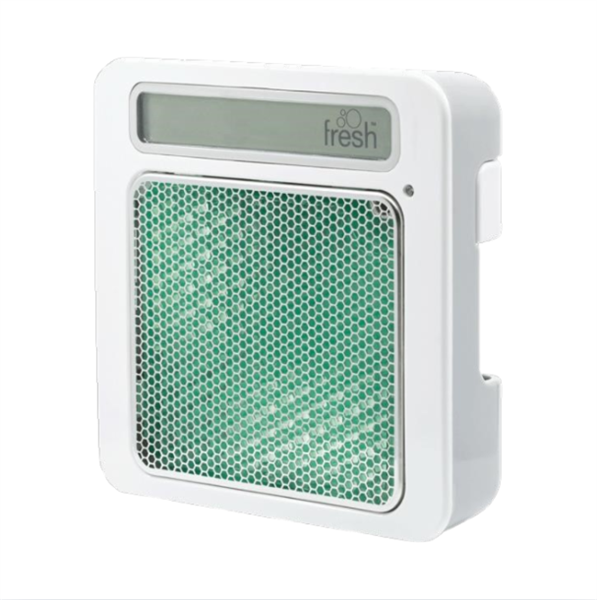 Modern, compact passive air freshener dispenser designed exclusively for use with Our Fresh fragrance refills.
