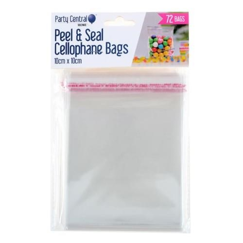 Peel & Seal Cellophane Bags 10cm x 10cm 72/PK