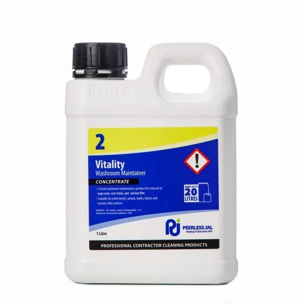 Peerless Vitality Washroom Maintainer 1L is a specialised cleaner designed for the routine maintenance of washroom surfaces.