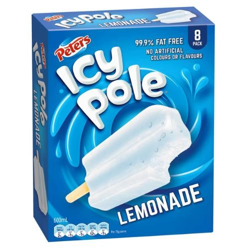 Peters Icy Pole Lemonade, Classic lemonade water ice that is 99% fat free with no artificial colours or flavours. Australian Made. Size: 8 Pack