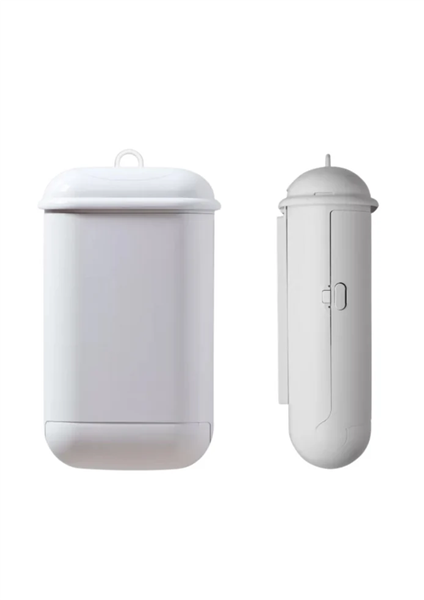 is a compact and hygienic sanitary disposal solution designed specifically for small washrooms or areas requiring daily or weekly servicing. With a sleek white finish and space-saving design, it offers a clean, modern alternative to traditional bins. The manual fingertip control provides effortless operation, while the uniquely positioned lifting ring—set away from the waste deposit area—minimizes user contact. Its innovative opening design allows access from any angle, enhancing usability and promoting safer waste disposal. Easy to install and service, it requires no special tools and can be maintained by your existing personnel