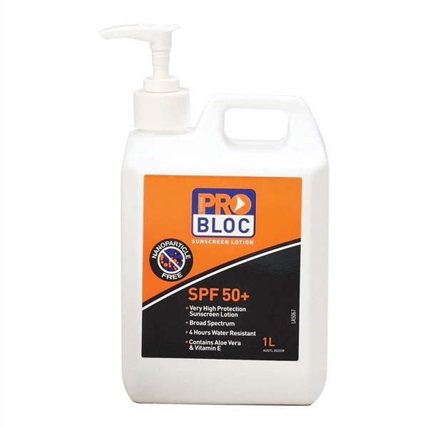 Choose Probloc Sunscreen 50 Plus 1L Pump for a reliable, high-coverage sunscreen that offers superior protection and hydration for workers in outdoor and high-UV environments—order your pump bottle today.