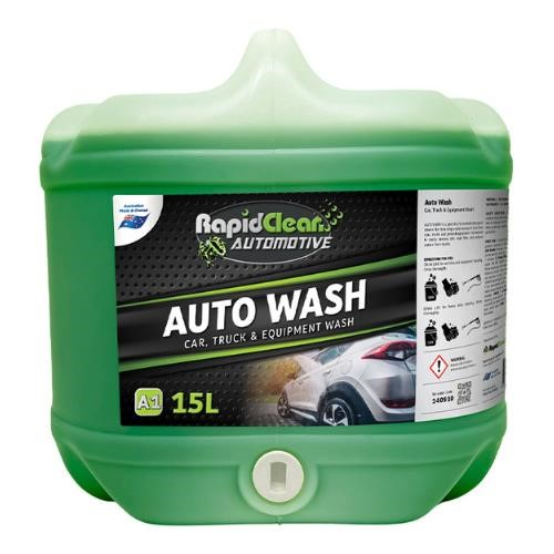 RapidClean Auto Wash is a concentrated detergent formulated for cleaning cars, trucks and general equipment — designed to remove dirt, road film, exhaust carbon, grease, oil, mud and grime from vehicle exteriors and heavy-duty equipment surfaces.