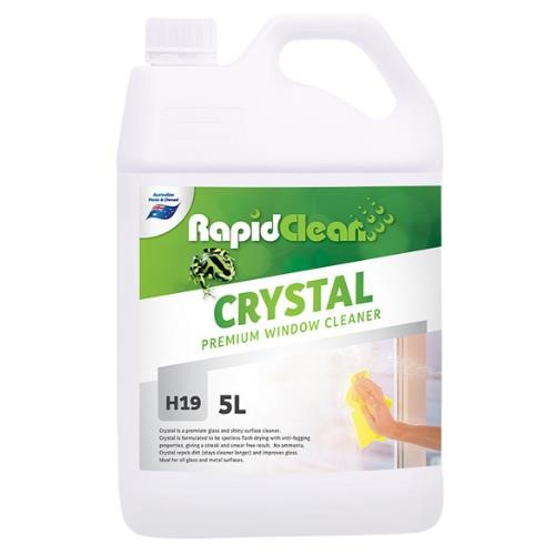 RapidClean Crystal is a premium glass and shiny surface cleaner. Crystal is formulated to be spotless flash drying with anti-fogging properties, giving a streak and smear free result. No ammonia, Crystal repels dirt and improves gloss. Crystal is safe for use on all glass and metal surfaces. It is fast drying and provides and streak and smear free result. Size: 5L