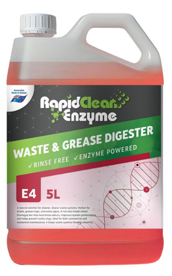 RapidClean Enzyme Waste & Grease Digester is a powerful, all-natural solution formulated with advanced multi-enzyme technology and biodegradable surfactants