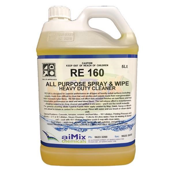 Aimix RE-160 is a highly concentrated, heavy-duty “spray & wipe” cleaner formulated to remove fat, grease, soil, and grime from a wide range of heavily soiled surfaces.