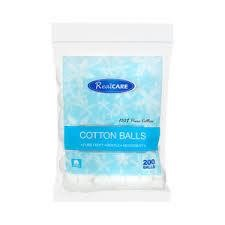 Real Care Cotton Balls 200/ Pack, Re-seal zipper bag, First aid use.100% Cotton.