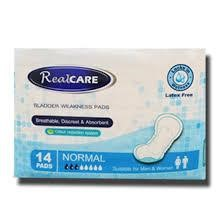 Real Care incontinence pads 14/pk. Breathable, Discreet & Absorbent. Odour reduction system. Latex Free. Suitable for Men & Women.