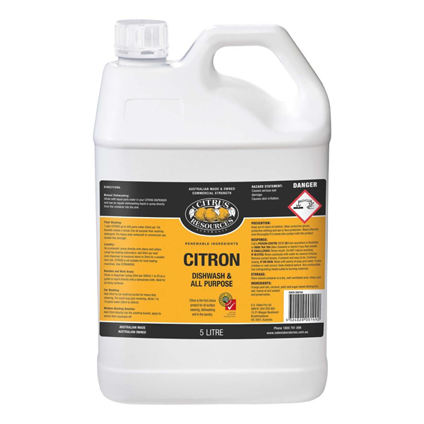 PRODUCT DESCRIPTION. Clean with confidence using Research Citron Dishwashing Detergent 5L, a high-performance, multi-purpose cleaner formulated with natural orange essence oil, MMB, and plant-based surfactants derived from coconut, palm, and sugar. Designed for both commercial and everyday use, this eco-friendly detergent delivers exceptional grease-cutting power while remaining gentle on hands—even during prolonged use. Its highly concentrated formula offers long-lasting value and versatility, making it ideal for washing dishes, windows, floors, vehicles, and even laundry. Free from artificial dyes, fragrances, and preservatives, it leaves behind a pleasant, natural citrus aroma and a spotless finish