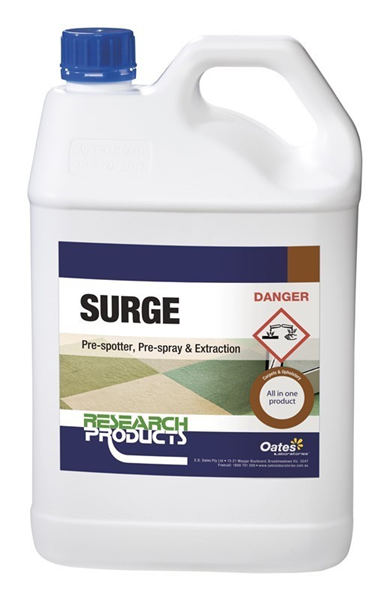 Surge is an all-in-one carpet cleaner serving as a spotter, pre-spray, and extraction detergent—designed to simplify your cleaning inventory with a single, highly concentrated formula.