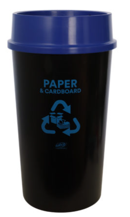 - The Sabco Bin Recycling Paper & Cardboard BLue Lid is a robust and sustainable 60L bin designed for efficient paper and cardboard waste segregation in commercial and public spaces.