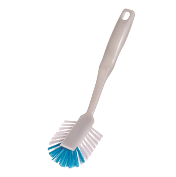 - Stiff yet resilient bristles remove food residues without damaging surfaces.