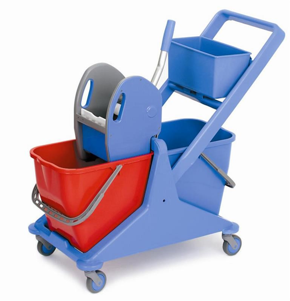 - The Sabco Dual 50L Industrial Mop Bucket With Trolley features two 50 litre buckets mounted on a mobile trolley for efficient, hygienic wet mopping in larger areas.
