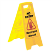 - The Sabco No Entry Restroom Closed A-Frame Sign is a high-visibility safety sign designed to clearly indicate restricted access to restrooms under maintenance or cleaning. Its bright yellow color ensures maximum visibility, making it ideal for use in various environments.