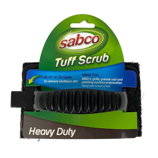 Sabco Tuff Scrub - Heavy Duty. Built in scraper to remove stubborn dirt. Ideal for BBQ’s, grills, grease rust and painting surface preparation.