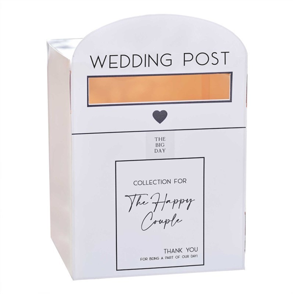 This wedding post box allows guests to leave messages of love for the happy couple. Each pack contains 1 x Wedding card box measuring 30cm (H) x 16cm (W) x 20cm (D) with 8 x sticker sheets.