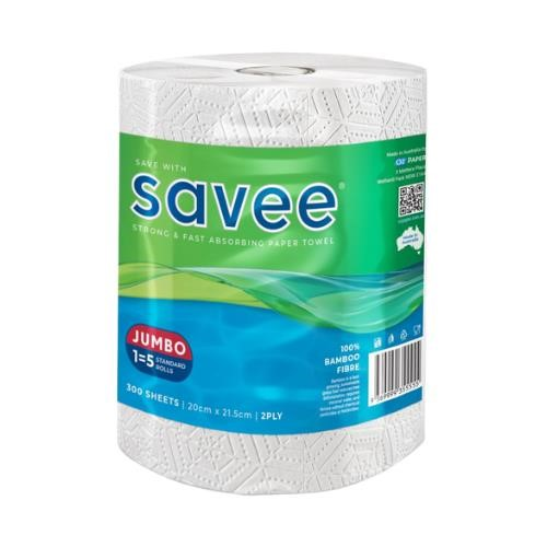Take on everyday messes with ease using the Savee Jumbo Roll Towel 2-Ply – 300 Sheets. Designed for maximum performance and value, this jumbo roll delivers reliable strength and absorbency in every sheet. Whether you're wiping, drying, or cleaning up big spills, Savee gets the job done.