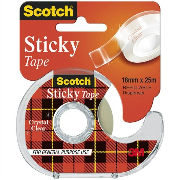 Scotch 502 sticky tape takes care of all the everyday home, office or school adhesive jobs. Good quality, general purpose adhesive stationery tape. Tape for everyday and general purpose use. Clear, glossy tape dispenses easily from the roll great for use at work. Acid free, won't yellow with age. Refillable Dispenser