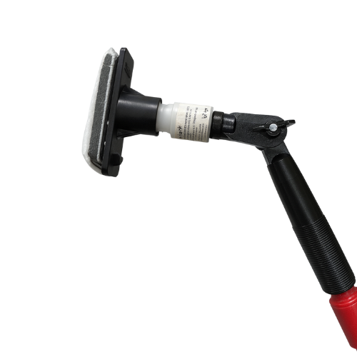 Fits onto extension poles or standard handles with ACME thick paint-roller-style thread, enabling ground-level cleaning of elevated cameras without the need for ladders.