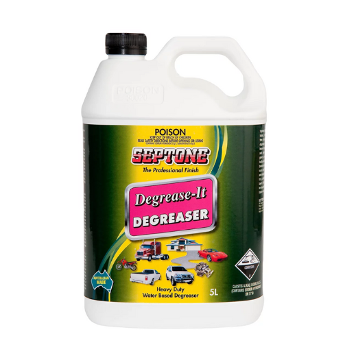 Septone Degrease IT is a concentrated, water-based heavy-duty degreaser formulated to cut through grease, oil, grime and dirt on machinery, engines, concrete floors and other heavily soiled surfaces.