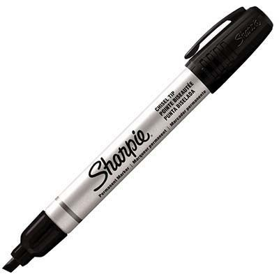 Sharpie Pro Permanent Marker with a bullet point makes impressive marks on most surfaces even wet and oily. Excellent for marking corrugate wood metal foil stone plastic leather and more. | Durable blocked bullet tip and metal barrel stand up to heavy use | Cap with convenient clip and 4 mm line width | Fade and water resistant