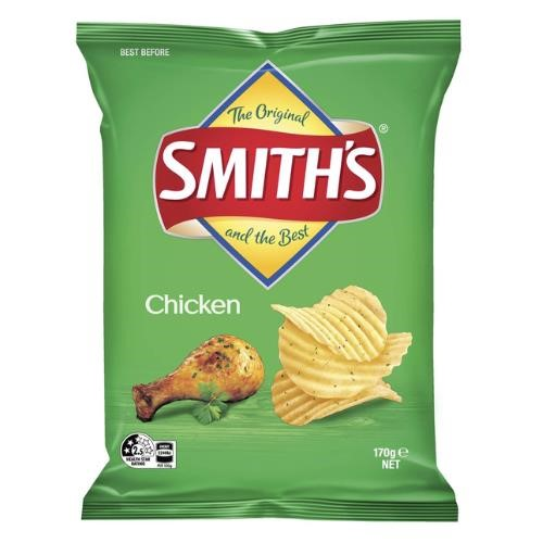 Smith's Crinkle cut, Smith's are very proud of their heritage and strive to ensure that they maintain the position as Australia's favourite chips - The Original and the Best. Smith's take top quality Aussie potatoes, peel, slice and cook them to perfection using healthier oils and then sprinkle them with your favourite seasoning. Flavour: Chicken. Size: 170g.