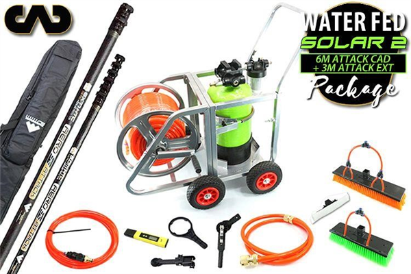 - BRILLIANT NEW 100% carbon, non-round Aero CAD Attack 6 m pole with 3 m extension (9 m total), plus 12.5 L Solarwash System on trolley with removable reel & 80 m hose
