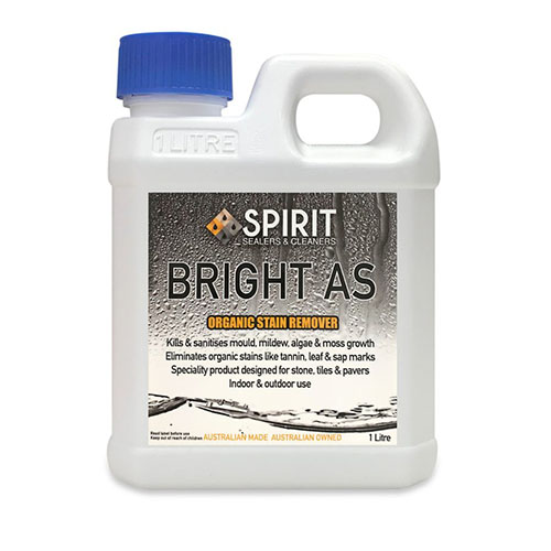 Bright As is a concentrated, chlorinated cleaner and organic stain remover formulated for interior and exterior use.