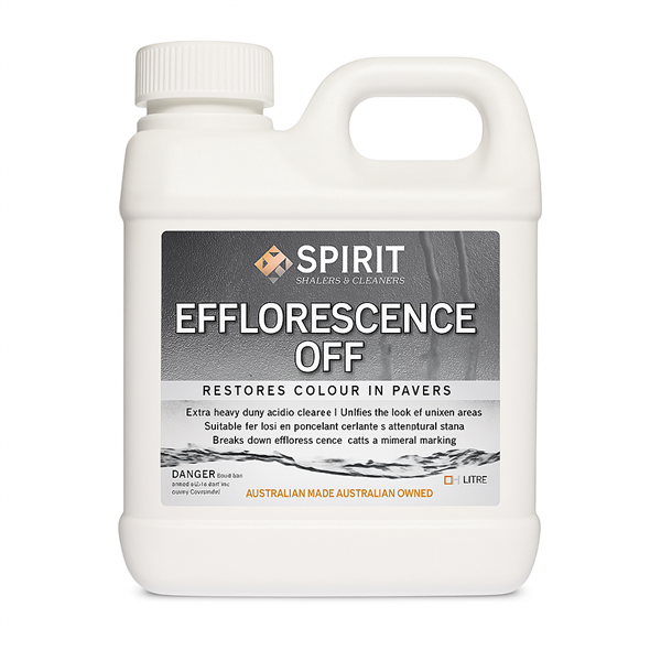Spirit Efflorescence Off is a professional-grade acidic cleaner formulated to remove efflorescence and mineral deposits from hard surfaces.