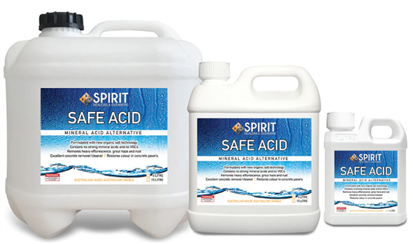 Spirit Safe Acid is a concentrated acidic cleaner developed as a safer alternative to hydrochloric acid.
