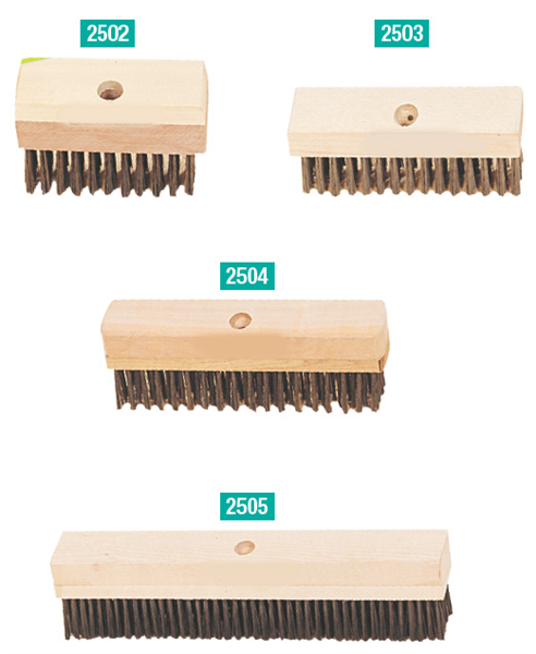 Extremely rigid, thick wire bristles provide maximum abrasion for aggressive scrubbing.