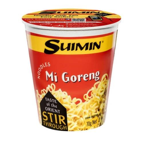 Suimin Cup Noodles bring the authentic taste of the orient. Ready in just 3 minutes with two easy sachets, Suimin Cup Noodles are perfect as a snack or meal option. Easy to prepare. Stir through sachet. Convenient. Contains: Lactose and may contain traces of Crustacean. Size: 70g