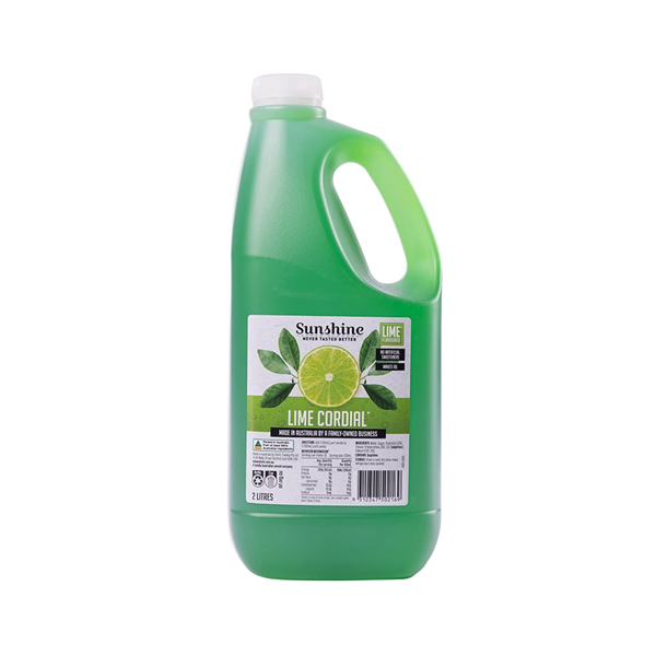 Sunshine Cordial Lime. Irresistible taste and flavours. Providing a delicious and refreshing beverage. Australian Made. Australian Owned. Size: 2L