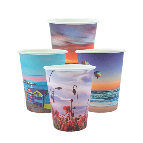 . 12oz True Fill Single Wall Smooth PLA Postcard Series Hot Cup 86.5mm