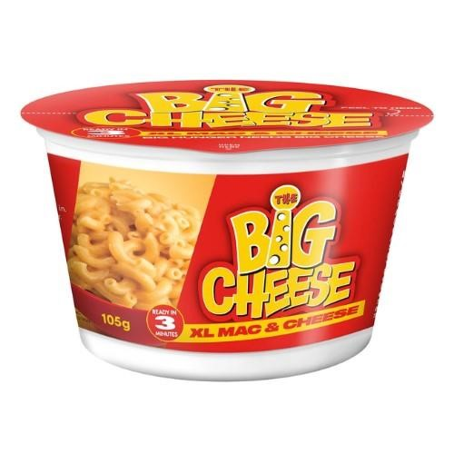 The Big Cheese XL Mac & Cheese, Australia's next big thing is here - The Big Cheese XL Mac & Cheese Bowl. Quality durum wheat macaroni covered with lashings of delicious cheddar cheese flavoured mix for the perfect comfort food snack. Quick & Easy ready in 3 minutes. Contains: Milk, Wheat, Gluten and Soy may also contain traces of Peanuts, Egg, Crustacean and Fish. Size: 105g